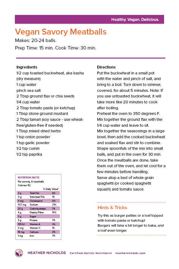Being vegan doesn’t have to mean ditching your favorite comfort meals—including meatballs! I love this recipe because it’s so savory and delicious. I’ve tried it out on many a meat-eater and had them asking for seconds—as well as the recipe.